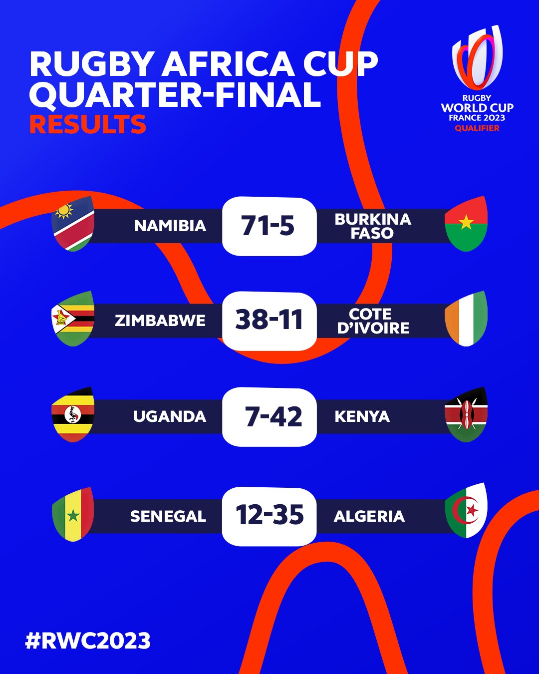 The other semifinal will see rivals Namibia and Zimbabwe face off against each other in a mouthwatering battle. The Zimbabweans defeated Cote D’Ivoire 38-11 in their quarter final clash to set up the match as Namibia thumped Burkina Faso 71-5.