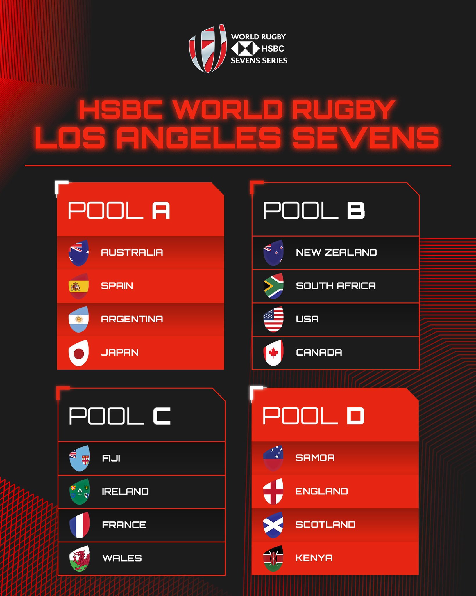South Africa arrive in LA in confident mood, fresh from their victory at the recent Commonwealth Games in England. The Blitzboks face New Zealand, hosts USA and Canada in a tough looking Pool B.