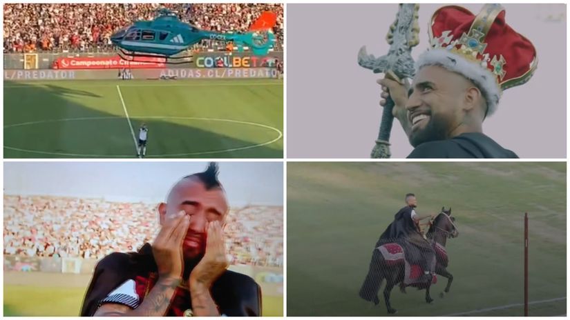 Return of the King! Vidal arrived at the stadium by helicopter, then hopped on a horse to greet the crowd